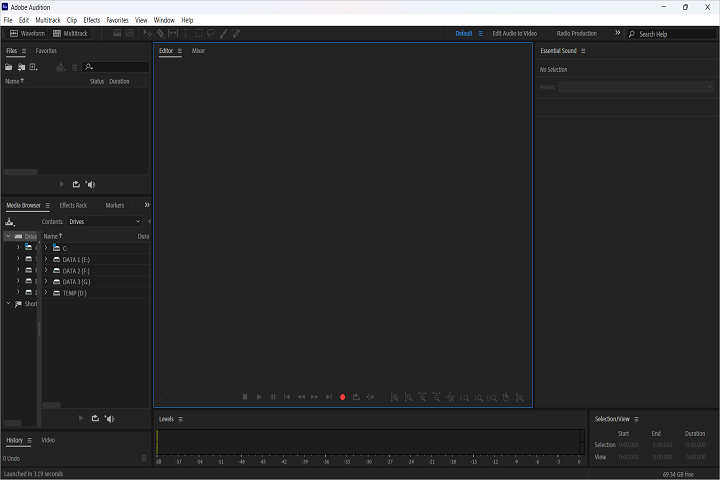 Launch: After installation, launch Audition from the Start Menu or Creative Cloud.