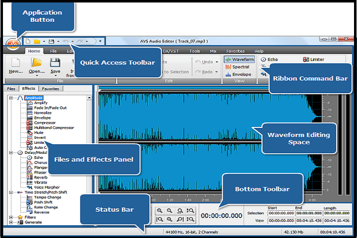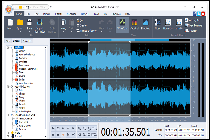 AVS Audio Editor supports essential and advanced editing operations such as: