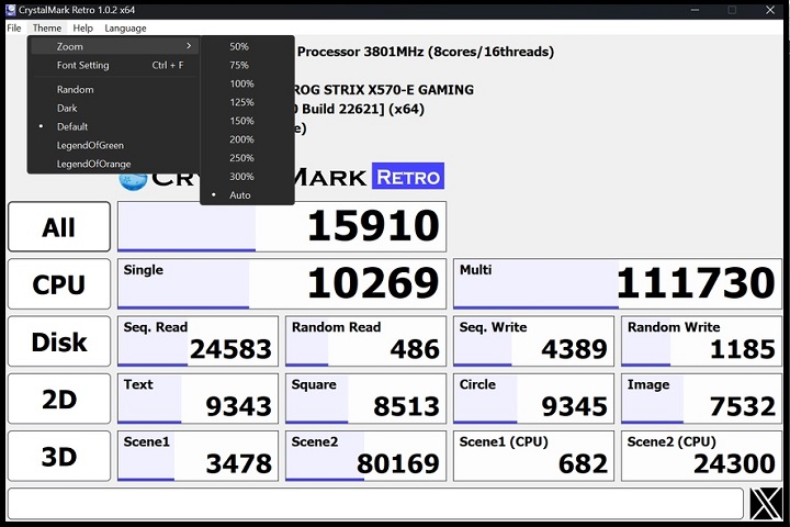CrystalMark Retro is also portable and lightweight, which means it consumes minimal system resources while performing comprehensive benchmark tests.