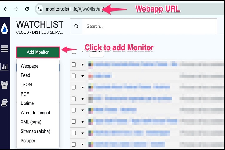 5. Start Monitoring – Add web pages to your dashboard, select elements to monitor, and let Distill Web Monitor track changes automatically.