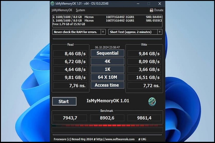 The software measures memory speed through various test sizes and access patterns, helping users identify potential RAM performance issues. It supports both 32-bit and 64-bit systems and works smoothly on Windows 10 and Windows 11. Due to its small file size and portability, IsMyMemoryOK is ideal for technicians, IT professionals, and everyday users who want a quick RAM performance check without installing heavy software.