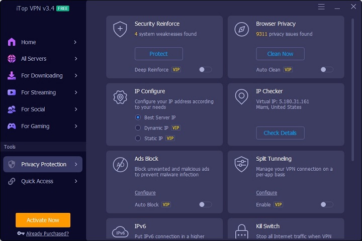 iTop VPN Free 7.2.0.6796 offers a range of features designed to ensure secure and unrestricted internet access:
