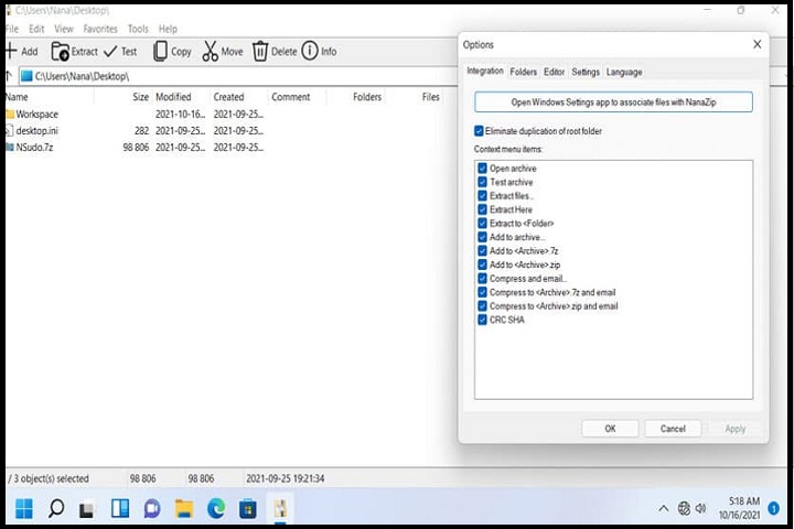 You may choose to set NanaZip as your default archive handler via Windows Settings or within NanaZip’s options — this will make it automatically open supported archive types.