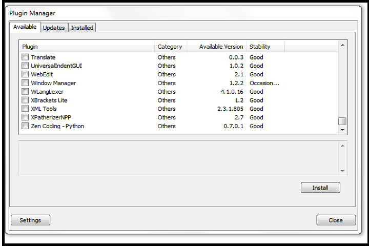 The Notepad++ Plugin Manager is a lightweight extension for Notepad++ that allows users to browse, install, update, and remove plugins without leaving the editor. With a user-friendly interface, it provides easy access to hundreds of plugins, including syntax highlighters, code formatters, FTP tools, and other productivity enhancers.