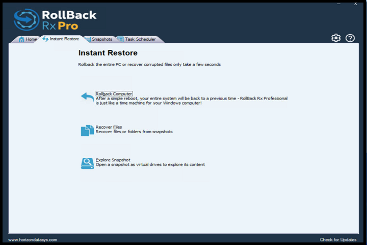 If a system issue occurs, Rollback Rx Pro can revert the PC back to any previous snapshot almost instantly. This process does not require lengthy restoration times, making it ideal for mission-critical systems.