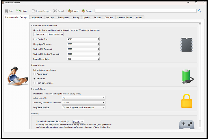 One of the main advantages of TweakNow WinSecret Plus is its ability to safely modify system configurations without causing instability. Each tweak is carefully designed to maintain system reliability while enhancing functionality and usability.