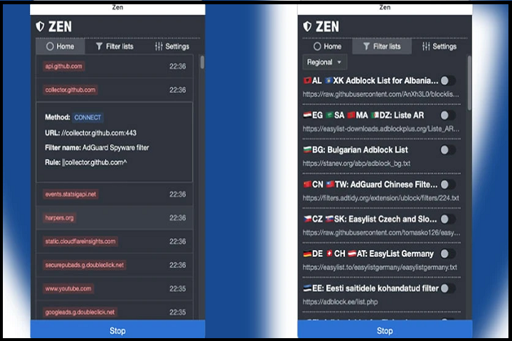 Zen also provides a graphical interface that allows users to monitor blocked requests in real time and manage filter lists easily. Users can enable or disable filters, whitelist websites, and customize rules based on their preferences. This flexibility makes Zen suitable for both beginners and advanced users who want full control over their internet traffic.